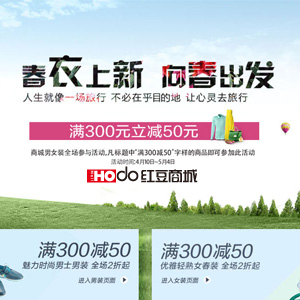 活动内容:红豆商城4月5月大折扣,男装女装满300减50!